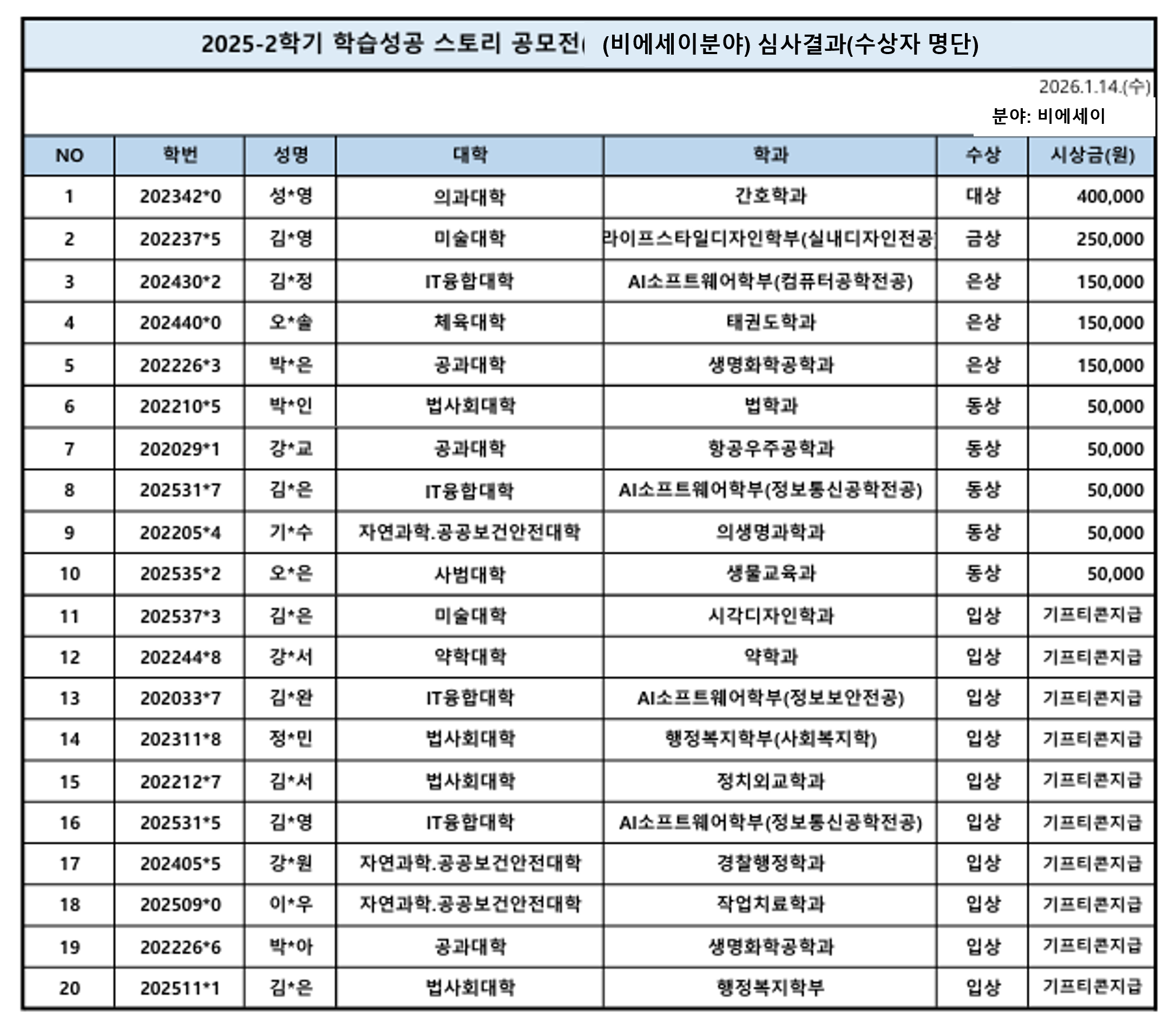 2025-2학기 학습성공스토리 공모전 수상자 명단 [ 아래 이미지 / 첨부파일 확인 ]