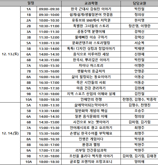 2025학년도 2학기 교내 사이버강좌 기말고사를 안내해 드립니다.(해당과목은 아래 시간표를 참고하기시 바랍니다.)